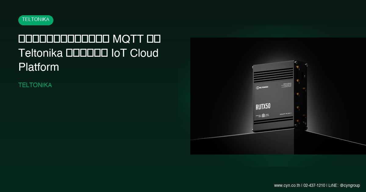 การตั้งค่า MQTT บนอุปกรณ์ Teltonika ถือเป็นก้าวสำคัญในการสร้างระบบ IoT ที่ทันสมัยและเชื่อถือได้ โดยอุปกรณ์รุ่น TRB246 และ RUTX11 มีศักยภาพเพียงพอที่จะรองรับการเชื่อมต่อไปยัง Azure IoT Hub, AWS IoT Core หรือ ThingsBoard ได้อย่างมีประสิทธิภาพสูงสุด การใช้งานโปรโตคอล MQTT กับอุปกรณ์เหล่านี้จะช่วยให้การสื่อสารระหว่างอุปกรณ์และระบบคลาวด์เป็นไปอย่างราบรื่นและปลอดภัย หากท่านต้องการคำปรึกษาในการเลือกอุปกรณ์ที่เหมาะสม หรือต้องการคู่มือการตั้งค่า MQTT แบบละเอียดสำหรับโปรเจกต์ของคุณ อย่าลังเลที่จะติดต่อ CYN Communication เราพร้อมให้คำแนะนำและจัดจำหน่ายอุปกรณ์ IoT Gateway และ Network Solution คุณภาพสูงเพื่อขับเคลื่อนธุรกิจของคุณสู่ยุคดิจิทัลอย่างสมบูรณ์แบบ