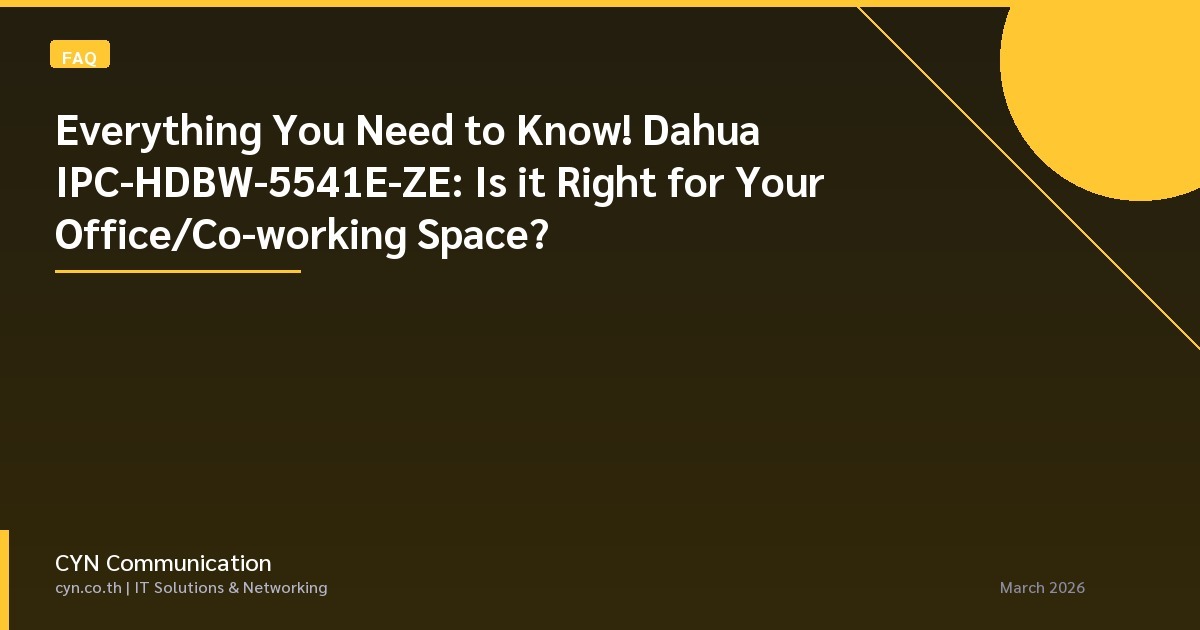 กล้องโดม Dahua IPC-HDBW-5541E-ZE เป็นที่ต้องการสูงในตลาด โดยได้รับความนิยมอย่างต่อเนื่องจากธุรกิจต่างๆ โดยเฉพาะสำนักงานและพื้นที่ Co-working ทั่วประเทศไทย ด้วยความสามารถในการบันทึกภาพความละเอียดสูงถึง 5MP และขับเคลื่อนด้วยเทคโนโลยี WizMind อัจฉริยะของ Dahua กล้องนี้ตอบโจทย์ความต้องการด้านความปลอดภัยที่ทันสมัยได้อย่างครบครัน บทความนี้รวบรวมคำถามที่พบบ่อยเกี่ยวกับ Dahua IPC-HDBW-5541E-ZE เพื่อให้เข้าใจถึงความสามารถ การติดตั้ง การรับประกัน และราคา โดยเฉพาะสำหรับผู้ซื้อเพื่อธุรกิจ (B2B) ในประเทศไทย