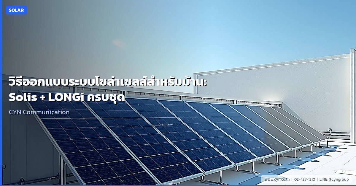 ในยุคที่ค่าครองชีพและราคาพลังงานไฟฟ้าปรับตัวสูงขึ้นอย่างต่อเนื่อง ระบบโซลาร์เซลล์บนหลังคา (Solar Rooftop System) จึงกลายเป็นทางเลือกที่ชาญฉลาดและคุ้มค่าที่สุดสำหรับเจ้าของบ้านในประเทศไทย การติดตั้งระบบผลิตไฟฟ้าจากแสงอาทิตย์ไม่เพียงแต่ช่วยลดภาระค่าใช้จ่ายรายเดือน แต่ยังเป็นการลงทุนระยะยาวที่มีอัตราการคืนทุน (ROI) สูงและช่วยสร้างภาพลักษณ์ของบ้านสีเขียวที่ยั่งยืน บทความนี้จะพาคุณไปเจาะลึกกระบวนการออกแบบระบบโซลาร์เซลล์สำหรับบ้านอย่างละเอียด ตั้งแต่การคำนวณความต้องการใช้ไฟฟ้าไปจนถึงการเลือกอุปกรณ์เกรดพรีเมียมจาก Solis Inverter และ LONGi Solar ซึ่งถือเป็นตัวแทนจำหน่ายอย่างเป็นทางการของ CYN Communication ที่มีประสบการณ์ด้านพลังงานแสงอาทิตย์มานานกว่า 10 ปี