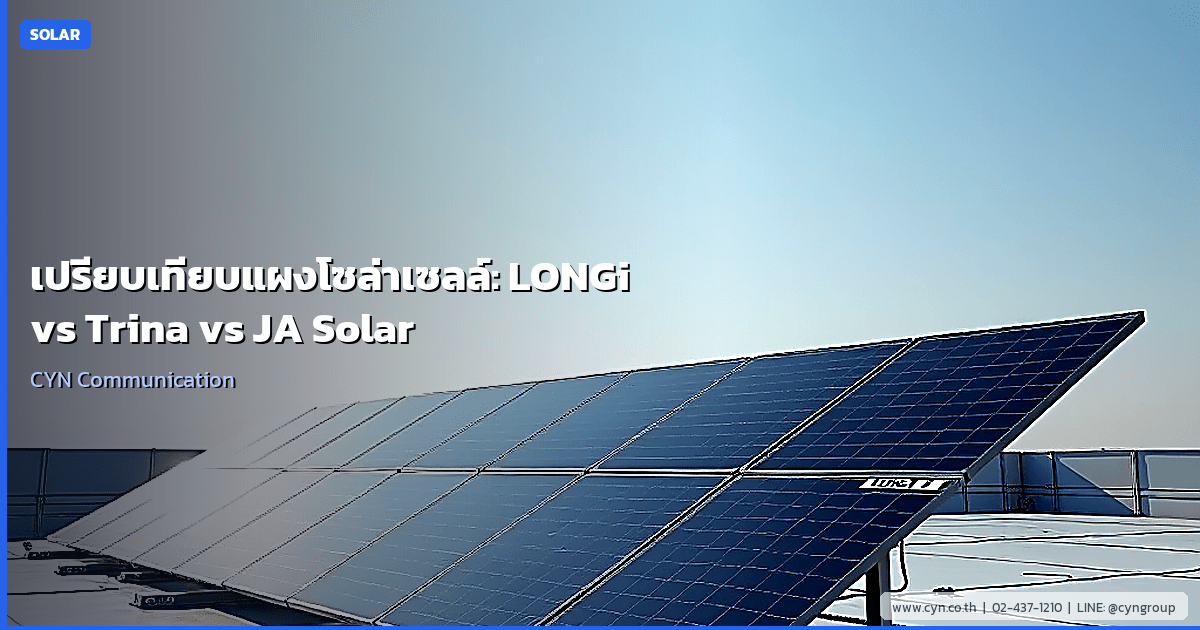 การเปรียบเทียบแผงโซลาร์เซลล์ทั้งสามรุ่นแสดงให้เห็นว่าไม่ว่าจะเป็น LONGi Hi-MO 7, Trina Vertex หรือ JA DeepBlue 3.0 ล้วนเป็นเทคโนโลยีระดับพรีเมียมที่พร้อมตอบสนองความต้องการพลังงานแสงอาทิตย์ในประเทศไทยได้อย่างเต็มศักยภาพ การลงทุนในแผงโซลาร์เซลล์คุณภาพสูงจากแบรนด์ชั้นนำเหล่านี้จะช่วยให้มั่นใจในผลตอบแทนการลงทุนและความยั่งยืนของระบบในระยะยาว หากคุณต้องการคำปรึกษาในการออกแบบระบบหรือสั่งซื้อแผงโซลาร์เซลล์ที่มีคุณภาพจาก CYN Communication เราพร้อมให้บริการแก่คุณ คุณสามารถติดต่อเราได้ที่ CYN Communication เพื่อรับบริการที่เชี่ยวชาญและสินค้าพร้อมส่งสำหรับทุกโครงการพลังงานแสงอาทิตย์ของคุณ