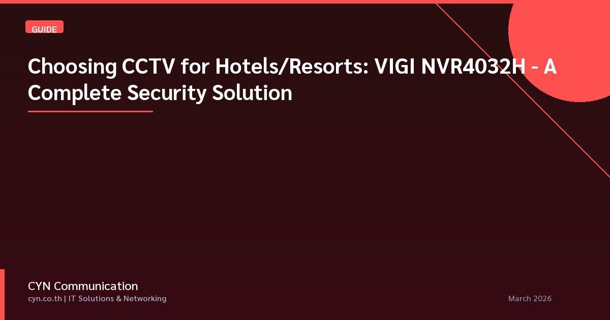 ในยุคที่การแข่งขันในธุรกิจโรงแรมและรีสอร์ทสูงขึ้น ความปลอดภัยไม่ได้หมายถึงแค่การป้องกันการสูญเสียเท่านั้น แต่ยังรวมถึงการสร้างความไว้วางใจและรับประกันความปลอดภัยของแขกผู้เข้าพัก โรงแรมและรีสอร์ทเป็นเป้าหมายหลักของภัยคุกคามด้านความปลอดภัยต่างๆ ตั้งแต่การโจรกรรมและการทำลายทรัพย์สิน ไปจนถึงเหตุการณ์ร้ายแรงที่อาจเกิดขึ้น ระบบกล้องวงจรปิด (CCTV) ที่แข็งแกร่งจึงไม่ใช่สิ่งฟุ่มเฟือยอีกต่อไป แต่เป็นสิ่งที่จำเป็น อย่างไรก็ตาม การเลือกโซลูชัน CCTV ที่เหมาะสมสำหรับโรงแรมหรือรีสอร์ทขนาดกลางถึงขนาดใหญ่ อาจเป็นเรื่องที่ซับซ้อน คู่มือการซื้อนี้จะนำคุณไปพิจารณาปัจจัยสำคัญต่างๆ โดยใช้ VIGI NVR4032H เป็นตัวอย่างของโซลูชันความปลอดภัยที่ครบครันและมีประสิทธิภาพ เราจะเจาะลึกรายละเอียดทางเทคนิค, กรณีการใช้งานจริง, และเหตุผลว่าทำไมการร่วมมือกับ CYN Communication สำหรับความต้องการด้าน CCTV ของคุณจึงเป็นการลงทุนที่ชาญฉลาด