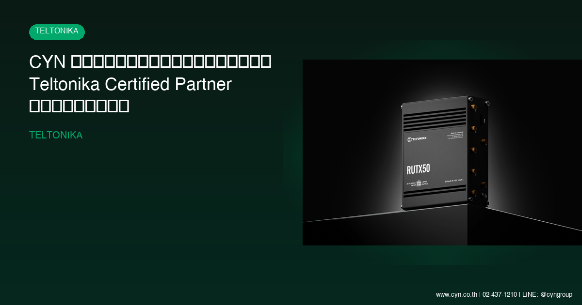 การที่ CYN Communication ได้รับแต่งตั้งเป็น Teltonika Certified Partner ประเทศไทย ยืนยันถึงมาตรฐานสากลและความเชี่ยวชาญด้านเทคโนโลยี IoT และเครือข่ายอัจฉริยะที่เรามุ่งมั่นพัฒนาอย่างต่อเนื่อง เพื่อให้ลูกค้าของไทยได้รับบริการที่ดีที่สุดพร้อมโซลูชันที่ทันสมัยที่สุด ไม่ว่าคุณกำลังมองหาอุปกรณ์เครือข่าย Router อุปกรณ์ IoT หรือระบบจัดการเครือข่ายแบบครบวงจร CYN Communication พร้อมเป็นคู่คิดและคู่ค้าที่ไว้ใจได้ในการขับเคลื่อนธุรกิจของคุณสู่ยุคดิจิทัลอย่างเต็มรูปแบบ อย่าพลาดโอกาสที่จะได้รับบริการระดับมืออาชีพจากทีมผู้เชี่ยวชาญที่ผ่านการรับรองจาก Teltonika Networks โดยตรง ติดต่อเราวันนี้เพื่อรับคำปรึกษาและสั่งซื้อสินค้าได้ที่ CYN Communication เว็บไซต์ทางการของเรา