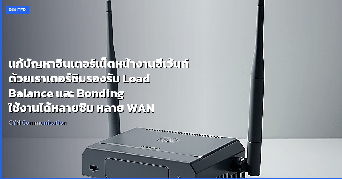 การแก้ปัญหาอินเทอร์เน็ตในงานอีเวนต์ด้วยเราเตอร์ซิมที่รองรับ Load Balance และ Bonding คือการลงทุนที่คุ้มค่าเพื่อสร้างความมั่นใจให้กับทุกฝ่ายที่เกี่ยวข้อง ไม่ว่าจะเป็นทีมจัดงาน ผู้จัดคอนเสิร์ต หรือลูกค้าผู้เข้าร่วมงาน การเลือกใช้เทคโนโลยีที่ทันสมัยนี้จะช่วยยกระดับคุณภาพงานอีเวนต์ให้ลื่นไหลและไร้ข้อผิดพลาด หากท่านกำลังมองหาอุปกรณ์เครือข่ายที่แข็งแกร่งและพร้อมให้บริการสำหรับงานอีเวนต์ของท่าน ติดต่อและขอคำแนะนำได้ที่ CYN Communication เพื่อเลือกซื้อสินค้าและรับบริการติดตั้งที่เหมาะสมกับความต้องการของคุณ
