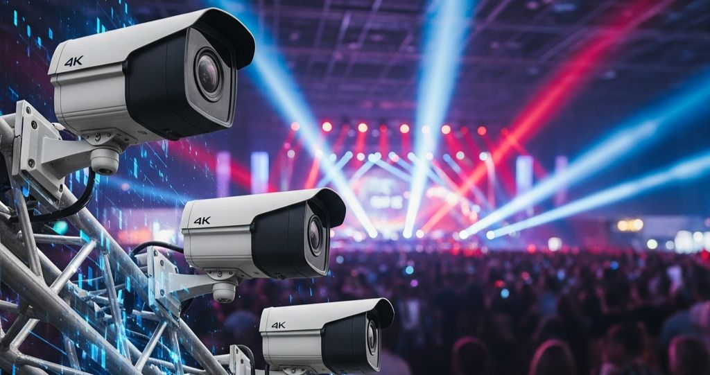 - แนวทางแก้ไข: ติดตั้งกล้อง IP Bullet 4K บนเสาไฟชั่วคราว 20 จุด เชื่อมต่อผ่านระบบ Wireless Mesh และใช้กล้อง Speed Dome (PTZ) 2 ตัวบริเวณหน้าเวทีเพื่อซูมดูเหตุการณ์