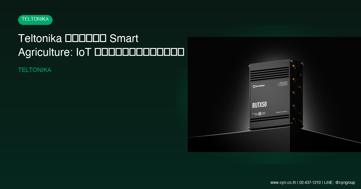 หากคุณสนใจที่จะยกระดับฟาร์มของคุณด้วยโซลูชัน IoT ที่ทันสมัยและน่าเชื่อถือ อย่าลังเลที่จะติดต่อ CYN Communication ได้ทันที เราพร้อมให้คำปรึกษา ออกแบบระบบ และจำหน่ายอุปกรณ์ Teltonika และเซนเซอร์ที่เกี่ยวข้องครบวงจร เพื่อให้คุณมั่นใจได้ว่าระบบเกษตรอัจฉริยะของคุณจะทำงานได้อย่างมีประสิทธิภาพสูงสุด