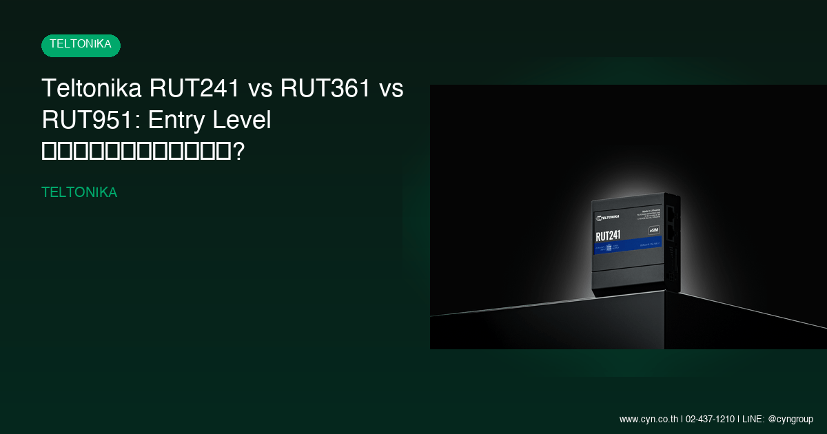 บทสรุปของการเปรียบเทียบ Teltonika RUT241 vs RUT361 vs RUT951 แสดงให้เห็นว่าแต่ละรุ่นมีจุดเด่นที่เหมาะสมกับความต้องการที่แตกต่างกัน RUT241 เหมาะสำหรับงานพื้นฐาน RUT361 สำหรับงานที่ต้องการความเสถียรและพอร์ตเชื่อมต่อมากขึ้น และ RUT951 สำหรับงานที่ต้องการความเร็วสูงและฟังก์ชันครบครัน การเลือกอุปกรณ์ที่ถูกต้องตั้งแต่เริ่มต้นจะช่วยลดปัญหาในระยะยาวและประหยัดต้นทุนในการบำรุงรักษาได้มาก หากท่านต้องการคำปรึกษาเพื่อเลือกอุปกรณ์ที่เหมาะสมที่สุดกับโครงสร้างพื้นฐานขององค์กร หรือต้องการสั่งซื้อสินค้า Teltonika RUT241 vs RUT361 vs RUT951 ติดต่อ CYN Communication ได้ทันที เราพร้อมให้บริการอุปกรณ์คุณภาพและคำปรึกษาจากทีมผู้เชี่ยวชาญเพื่อความสำเร็จของธุรกิจคุณ