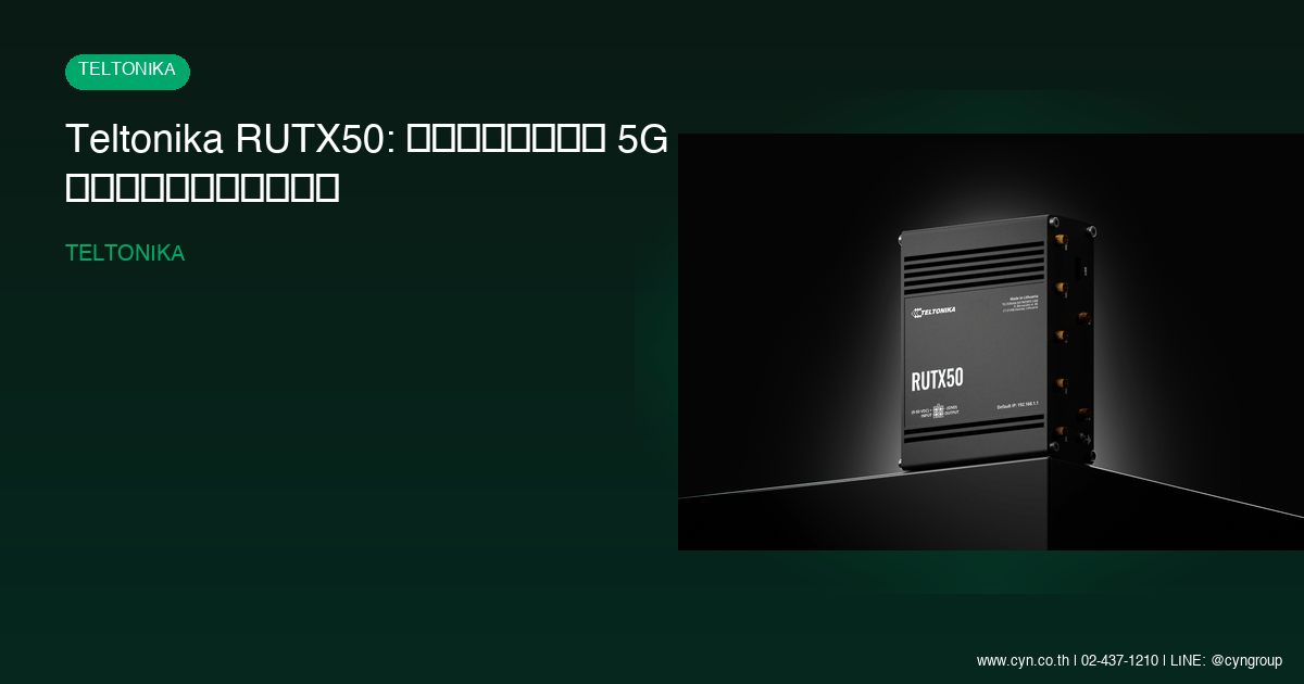 Teltonika RUTX50 เป็นเราเตอร์ 5G อเนกประสงค์ที่รวมเอาความแข็งแกร่งของฮาร์ดแวร์อุตสาหกรรม ความเร็วสูงสุด และความปลอดภัยในระดับสูงไว้ในอุปกรณ์เดียว เหมาะอย่างยิ่งสำหรับโรงงาน โกดังสินค้า สำนักงาน และระบบ IoT ที่ต้องการความเสถียรและการเชื่อมต่อที่ไร้ที่ติ การลงทุนกับอุปกรณ์นี้คือการวางรากฐานเครือข่ายที่มั่นคงสำหรับธุรกิจของคุณในยุคดิจิทัล เพื่อความมั่นใจในคุณภาพและการติดตั้งที่เหมาะสมกับความต้องการเฉพาะด้านขององค์กรของท่าน อย่าลืมติดต่อผู้เชี่ยวชาญเพื่อรับคำปรึกษาและสั่งซื้อสินค้าได้ที่ CYN Communication แหล่งจำหน่ายอุปกรณ์ IT และ Network มืออาชีพที่คุณวางใจได้