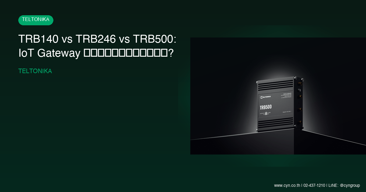 สรุปแล้ว การเปรียบเทียบระหว่าง TRB140 vs TRB246 vs TRB500 จะเห็นได้ชัดเจนว่าทั้งสามรุ่นมีจุดเด่นที่แตกต่างกันตามระดับความซับซ้อนของงาน TRB140 เหมาะสำหรับงานพื้นฐาน TRB246 เหมาะสำหรับงานที่ต้องการความยืดหยุ่น และ TRB500 คือผู้นำด้านประสิทธิภาพสำหรับงานหนัก หากคุณต้องการคำแนะนำเฉพาะทางหรือต้องการสั่งซื้ออุปกรณ์ IoT Gateway เหล่านี้เพื่อขับเคลื่อนธุรกิจของคุณ CYN Communication พร้อมให้คำปรึกษาและจำหน่ายอุปกรณ์คุณภาพสูงจาก Teltonika Networks โดยตรง คุณสามารถติดต่อสอบถามรายละเอียดเพิ่มเติมหรือสั่งซื้อสินค้าได้ที่เว็บไซต์ CYN Communication เพื่อให้มั่นใจได้ว่าระบบ IoT ของคุณจะเป็นไปอย่างมีประสิทธิภาพและปลอดภัยสูงสุด