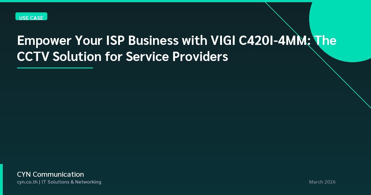 ในโลกที่เชื่อมต่อกันอย่างรวดเร็วในปัจจุบัน บริการอินเทอร์เน็ตที่เชื่อถือได้ไม่ใช่แค่ความสะดวกสบาย แต่เป็นสิ่งจำเป็นขั้นพื้นฐาน ทำให้เกิดการแข่งขันที่สูงในตลาดสำหรับผู้ให้บริการอินเทอร์เน็ต (ISP) เพื่อที่จะเติบโตได้ ISP ไม่เพียงแต่ต้องมอบการเชื่อมต่อที่สม่ำเสมอเท่านั้น แต่ยังต้องหาวิธีการใหม่ๆ ในการสร้างความแตกต่าง เพิ่มคุณค่าให้กับลูกค้า และแก้ไขปัญหาการดำเนินงานเชิงรุกอีกด้วย การนำเสนอบริการรักษาความปลอดภัยแบบรวม (bundled security services) โดยเฉพาะโซลูชันกล้องวงจรปิด กำลังพิสูจน์ให้เห็นว่าเป็นกลยุทธ์ที่มีประสิทธิภาพสูง กล้องวงจรปิด VIGI C420I-4MM ซึ่งจำหน่ายโดย CYN Communication (cyn.co.th) เป็นตัวเลือกที่น่าสนใจและคุ้มค่าสำหรับ ISP ที่ต้องการขยายขอบเขตบริการและเสริมสร้างตำแหน่งทางการตลาดในประเทศไทย